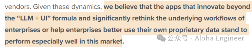 仔细读完后,发现干货不少,无论对于生成式AI投资、AI采购还是我这种AI一线创业者,都能带来不少启发。