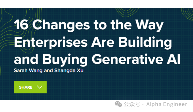 著名风投公司Andreessen Horowitz (简称a16z)近期发布了一份研究报告,标题为《16 Changes to the Way Enterprises Are Building and Buying Generative AI》。