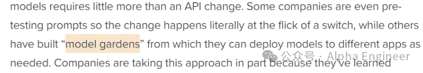 为了避免锁定于一家大模型供应商,企业往往会构建自己的“模型花园”,并将应用构建于模型花园之上。