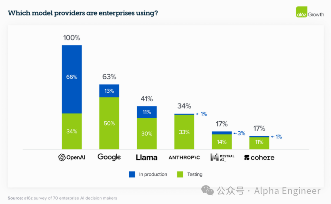 6个月前,绝大部分企业只在使用OpenAI一家的模型。但今年企业基本都在同时测试及使用多个大模型。