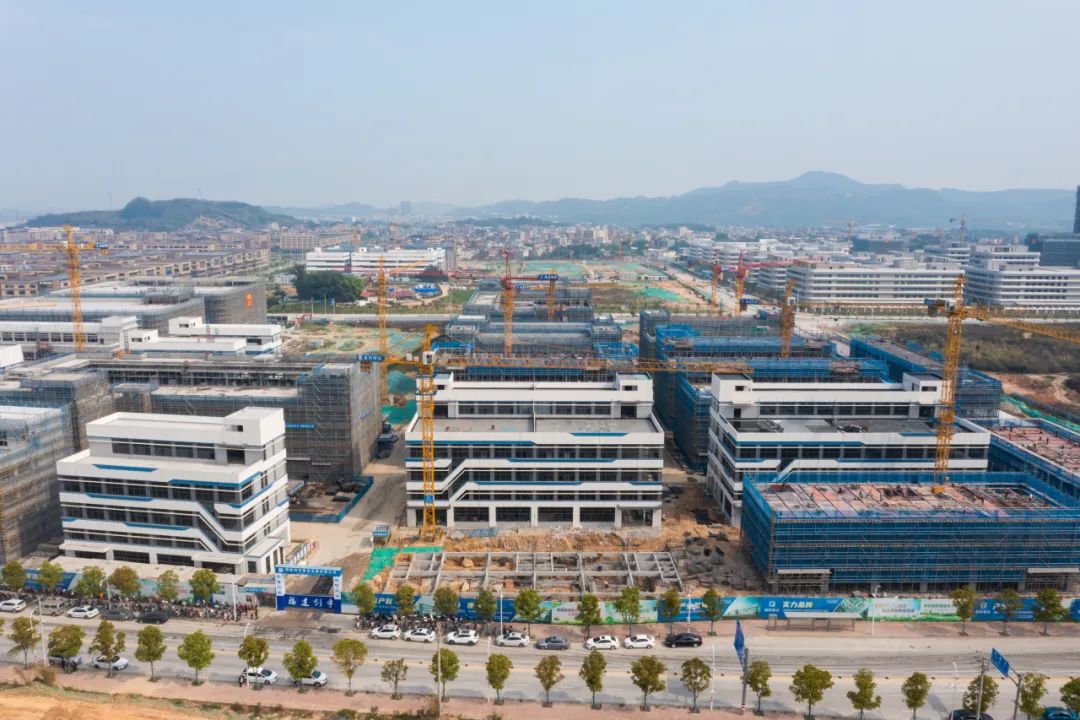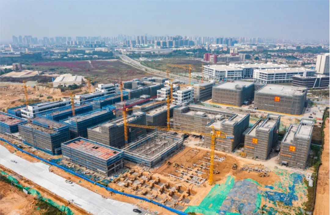 该产业园用地面积102亩,规划建设面积约14万平方米,分五期建设,目前在建的为一期、二期和三期,其中9栋已封顶,其余工程也在有序推进中。一期项目预计今年8月底可竣工,二期项目预计今年12月可竣工。