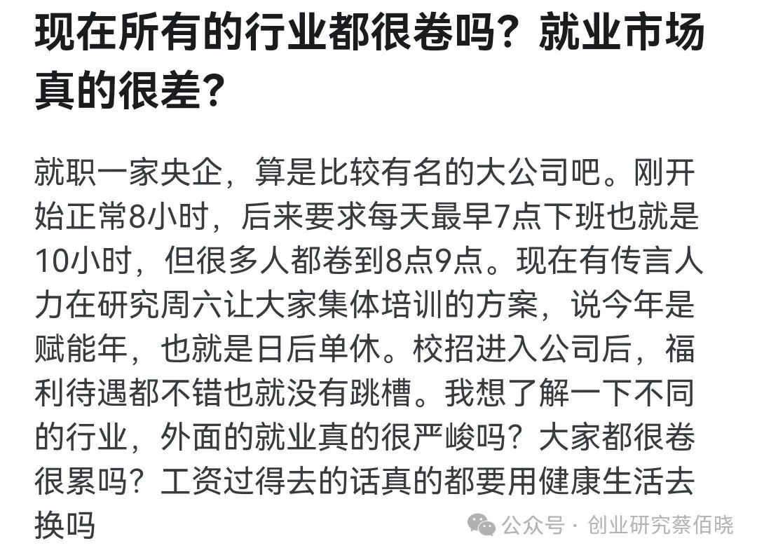 其实那些说现在行业非常卷的那些人的话,基本上都是非常挑剔的,那些人其实我们每个人的话就说只要放得下身段,只要肯去找工作,现在是。100%能够找得到工作的,你能不能做得下去?是你自己的事情,现在就业的一些前景是非常宽广的,真的是这样子的。你别相信那些互联网说哦,这个也卷那个也卷卷什么是不是卷的,是你自己卷,而不是社会卷。社会卷的话就是社会都是规定那样子的,那么你就按照那个规矩来去做就行了的。现在的行业规则就是每天都需要工作12个小时,在工厂里面,如果在办公室里面的话,每天工作十个小时,基本上都是这样子的。那么你说怎么卷?大家都是这样子去工作。
