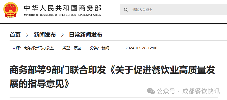 日前,商务部等9部门下发《关于促进餐饮业高质量发展的指导意见》(商服贸发[2024]46号),从7个方面提出22项具体政策措施,进一步释放餐饮消费潜力,推动餐饮业高质量发展,更好满足人民日益增长的美好生活需要。