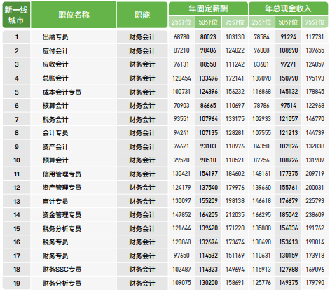 新一线城市新能源汽车行业财务薪酬如下: