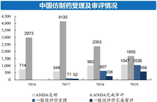 (二)国家对仿制药质量监管力度加大,促使企业加大研发投入。一致性评价政策带动了仿制药CXO的市场增长,仿制药注册申请由2016年714件增长至2019年的1047件;仿制药一致性评价申请由2016年的0件增长至2019年的1038件。2020年我国化学药仿制药的批文在11万个左右,推行仿制药一致性评价是提高国内仿制药整体水平的必然路径,我国仿制药一致性评价工作也将是长期的实践过程,未来将持续10-20年。根据百诚医药招股说明书数据,预计一致性评价为CRO带来的市场空间约为340亿元。