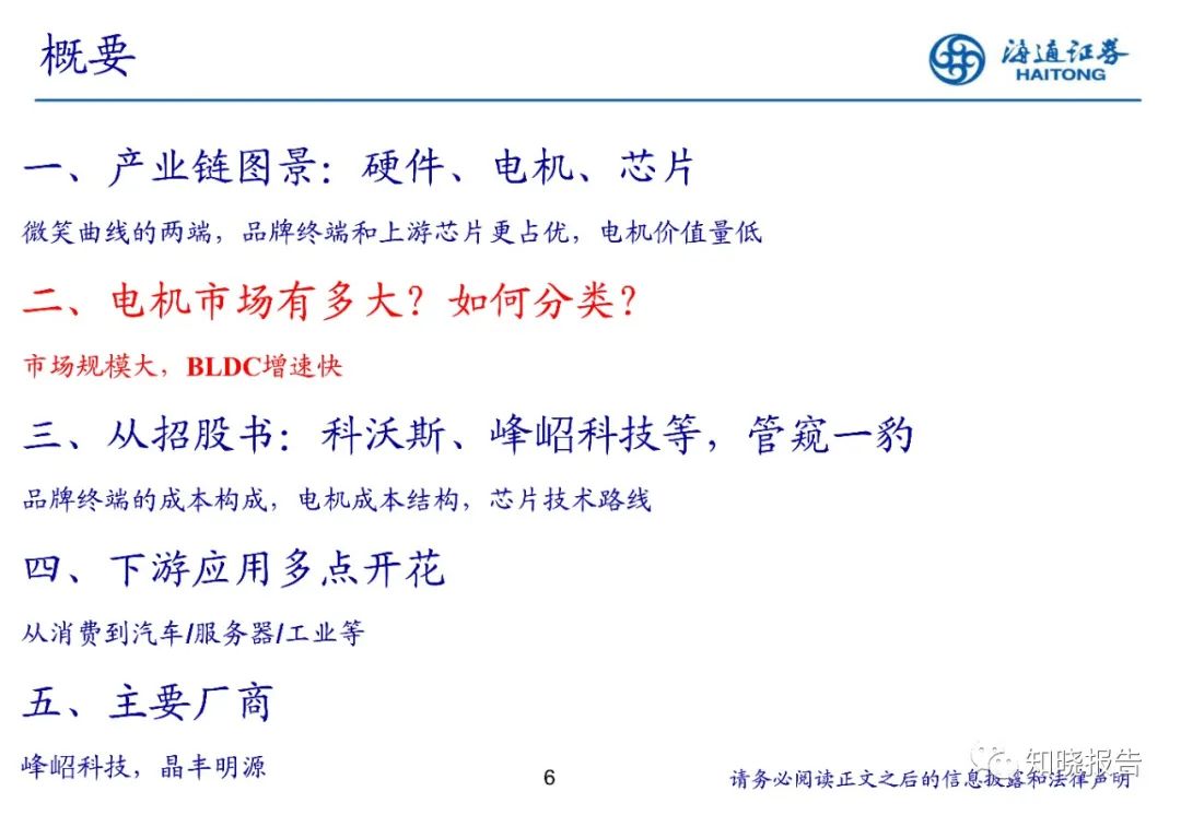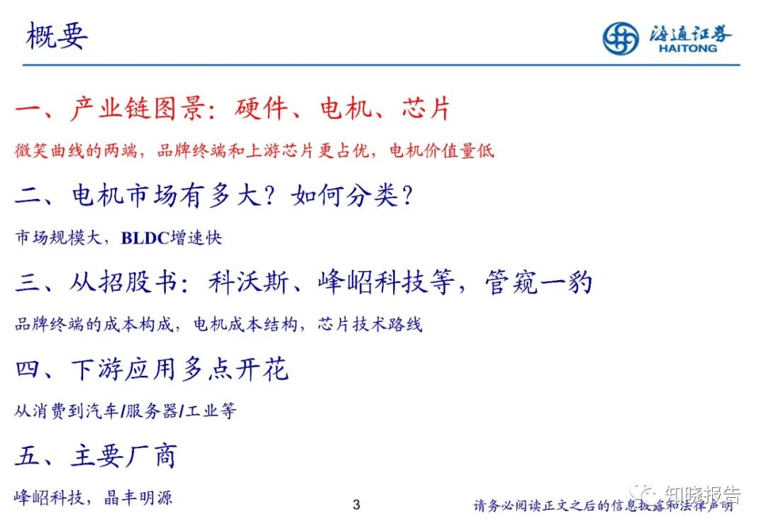 1、产业链图景:我们发现围绕硬件—电机—芯片产业链,微笑曲线的两端品牌终端和上游芯片更占优,电机价值量低。