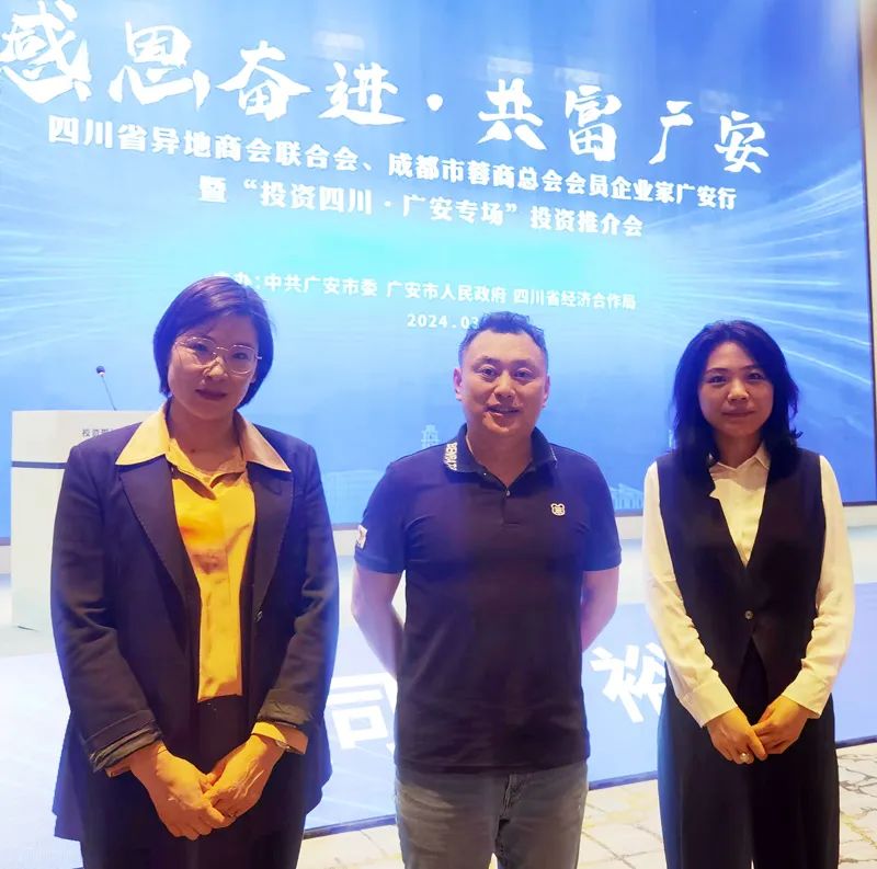 3月29日-30日,由四川省异地地商会联合会、成都市蓉商总会联合主办的“感恩奋进·共富广安”会员企业家广安行暨“投资四川·广安专场”活动在广安举行。四川省异地商会联合会会长樊建川、成都蓉商总会会长李飚等120名企业家参加活动。我商会常务副会长范会涛,副会长田灿、初福波参加活动。