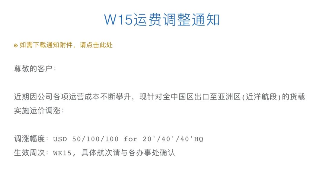 3月28日,赫伯罗特发布公告称,自2024年4月8日起,从亚洲(不包括日本)至拉丁美洲西海岸、墨西哥、加勒比海、中美洲和拉丁美洲东海岸航线实行新的GRI。