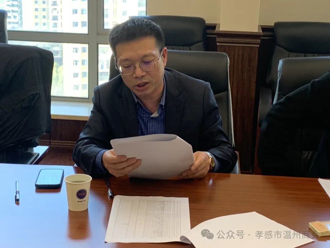 2024年3月29日,孝感市温州商会第三届一次常务会长会议在商会会议室召开。会长余汉平参加会议并讲话。