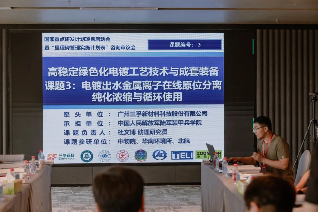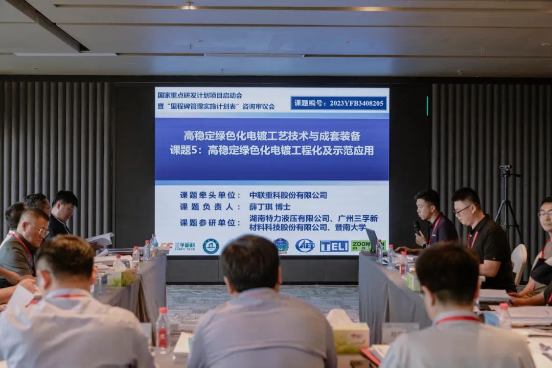 3月27日,由三孚新科牵头承担的2023国家重点研发计划项目“高稳定绿色化电镀工艺技术与成套装备”项目启动会暨项目实施方案论证会,于中新广州知识城健芯国际大酒店顺利召开。自然科学基金委员会高技术研究发展中心领导、省市区科技部门领导、项目专家组、项目牵头单位、课题承担单位的代表及专家学者共同出席本次活动。会议采用线上线下相结合的方式进行。