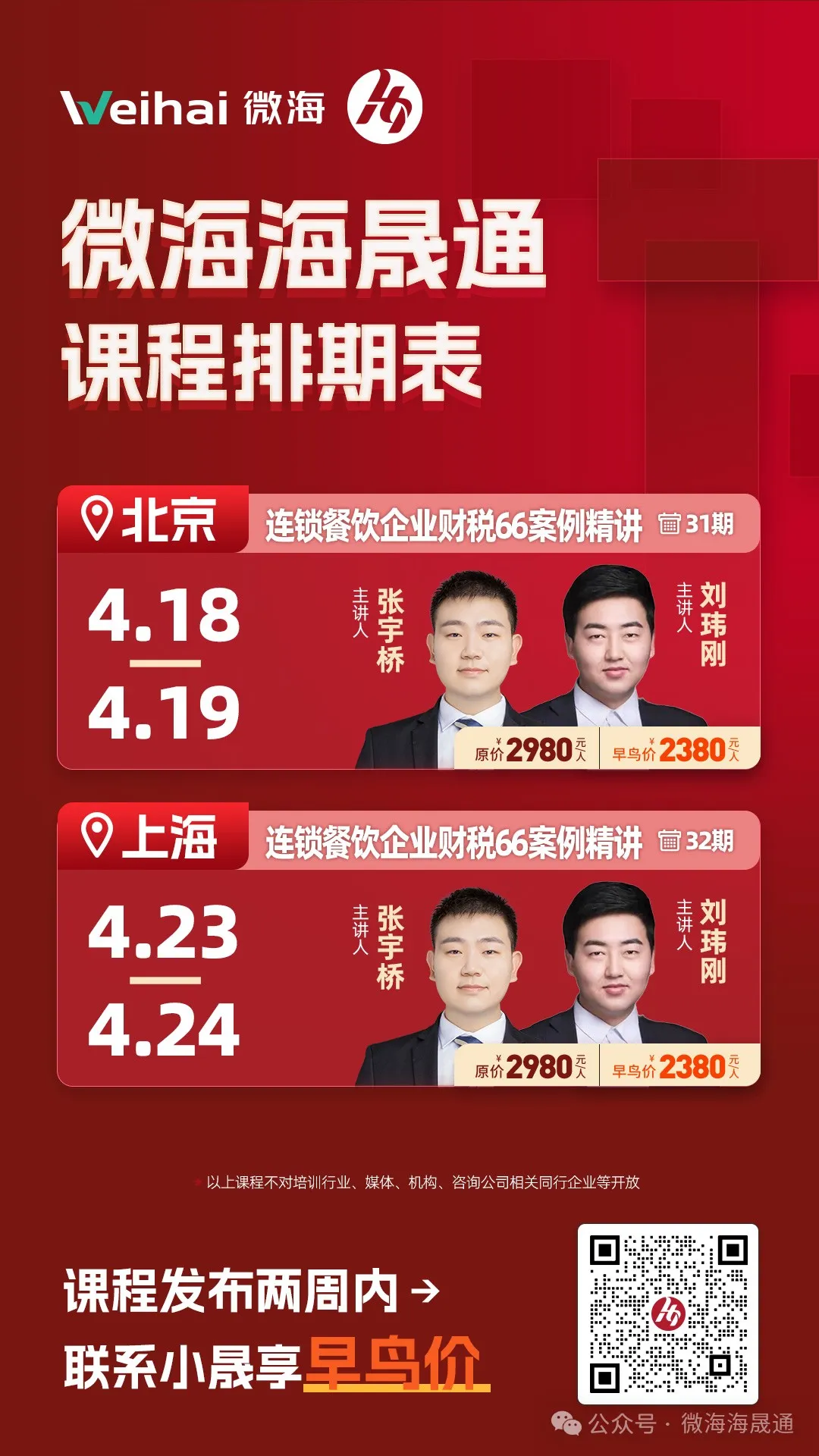 为此,我们推出微海海晟通财税系列课——《连锁餐饮企业财税66案例精讲课》!