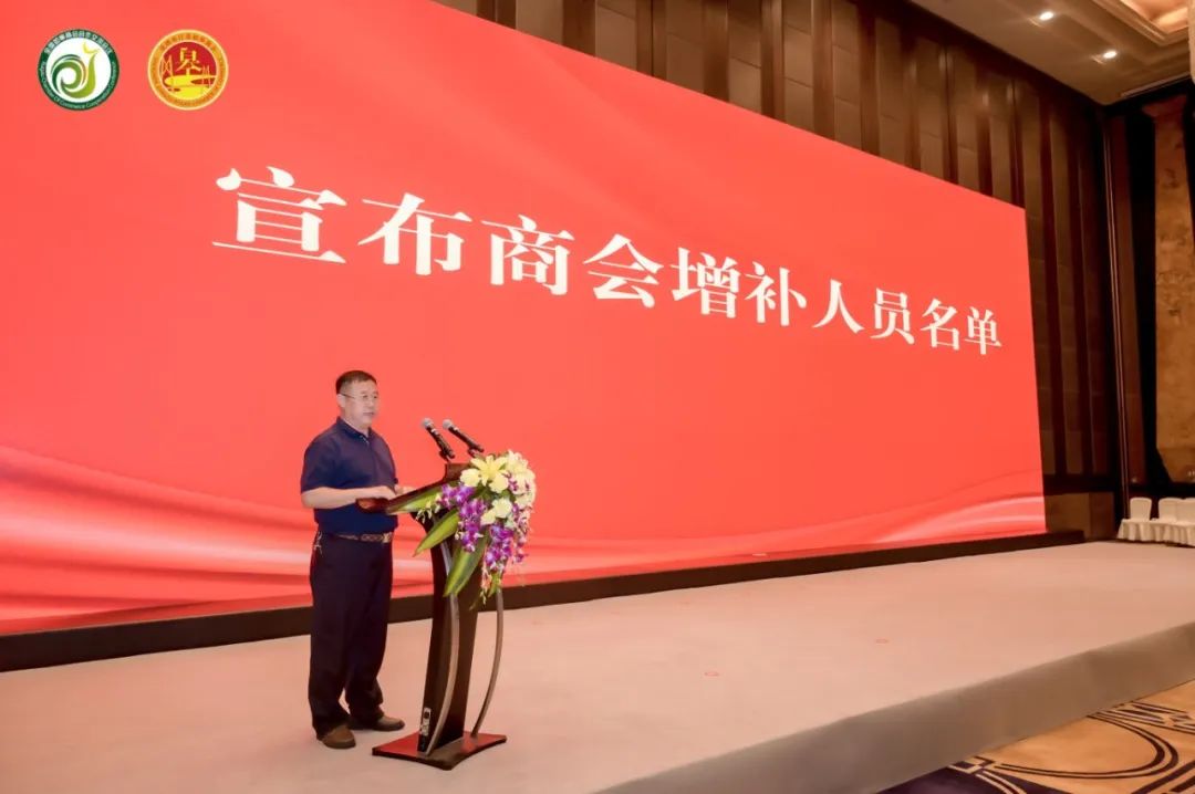 商会常务副会长冯应祥宣读《关于吸收新会员以及增补常务副会长、副会长、理事的决定》。