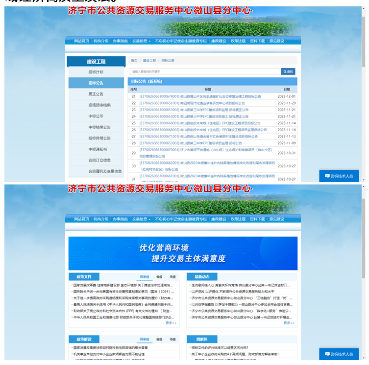 为进一步发挥政务公开在优化营商环境方面的重要作用,济宁市公共资源交易服务中心微山县分中心以“建机制、抓规范、强服务、提效率”为工作重点,着力推进招标投标领域政务公开,不断提高为企服务水平,助力优化营商环境工作再上新台阶。