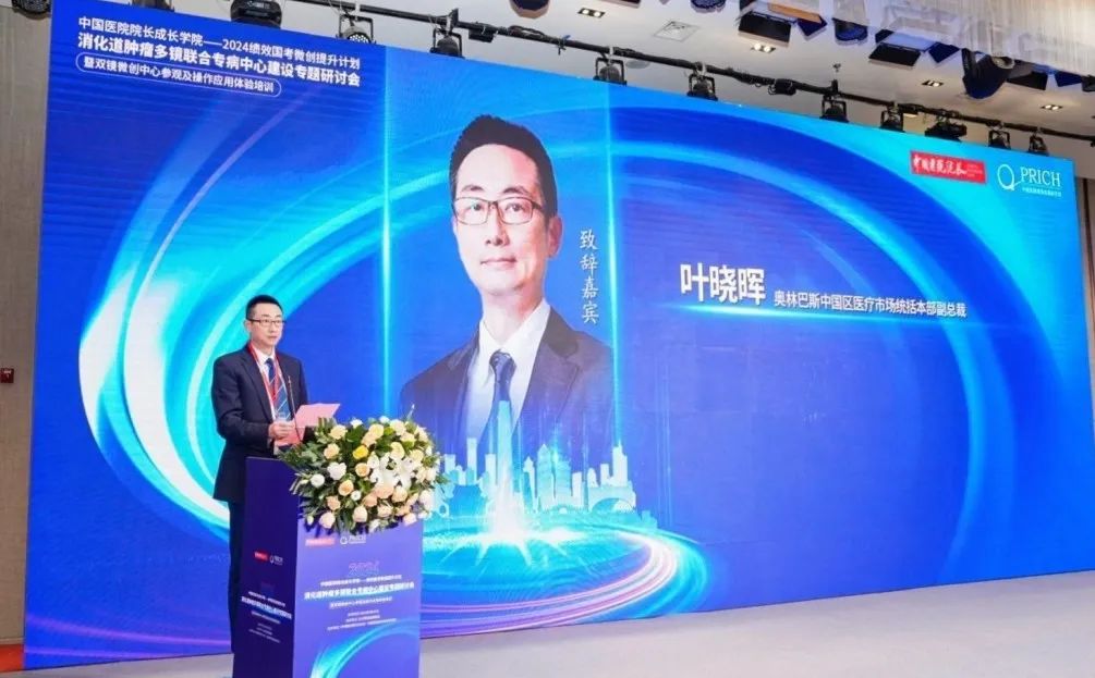接下来,奥林巴斯中国区医疗市场统括本部副总裁叶晓晖作为企业代表发表致辞,他表示,在消化道肿瘤领域,技术更迭推动了行业对“精准诊疗”和“保留功能”治疗理念的探索,使内外科联合、双镜联合技术成为患者诊断和治疗更精准、更优质的选择,是一个有效提升患者生活质量的临床解决方案;另外,随着微创手术的普及和发展,也对医院及医疗从业者提出了更高要求,如何通过打破学科壁垒,构建“以患者为中心,以疾病诊疗为链条”的多学科融合管理模式,使手术更微创、更精准,也成为各位医院管理者、各位专家,以及整个医疗行业需要持续探讨的重要课题。奥林巴斯作为医疗内窥镜行业的创新者与深耕者,始终坚持“患者至上”的核心价值观,积极响应国家政策号召,发挥前沿科学与科技的力量,推动新理念、新技术在各级医院中的推广普及,服务中国公共卫生高质量发展。此次,通过与《中国医院院长》杂志、中国医院绩效改革研究院携手一同搭建“中国医院院长成长学院”这个新理念、新技术、新模式的交流平台,助力胃肠肿瘤专病中心建设,促进医院高质量发展,保障患者受益最大化,共同推动我国医疗服务质量和医疗体系建设的完善。