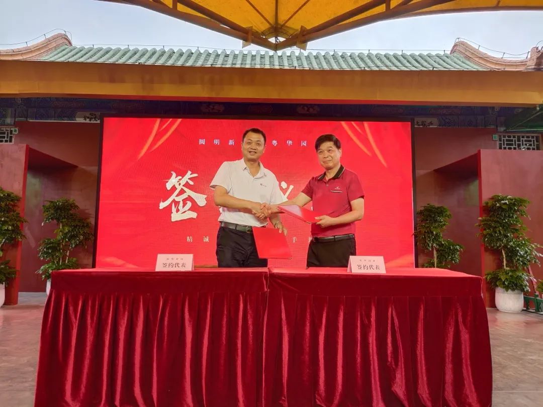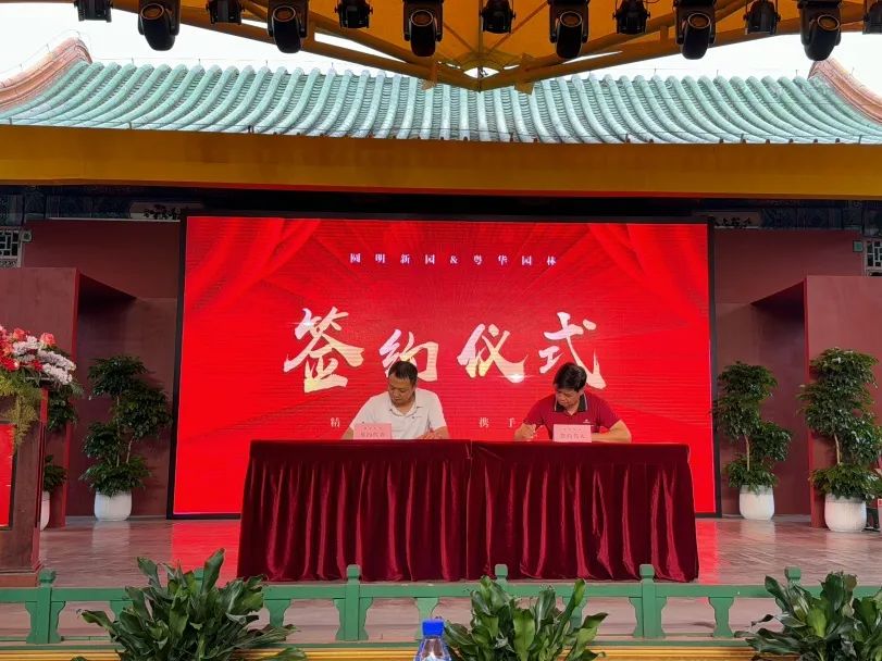 3月28日下午,珠海农控集团下属粤华园林公司与珠海经济特区圆明新园旅游有限公司在园内宫廷剧场签订战略合作协议。粤华园林董事长王卫东,圆明新园党支部书记、总经理曾翀出席签约仪式并分别讲话,双方领导班子及各部门负责人20余人参加活动。