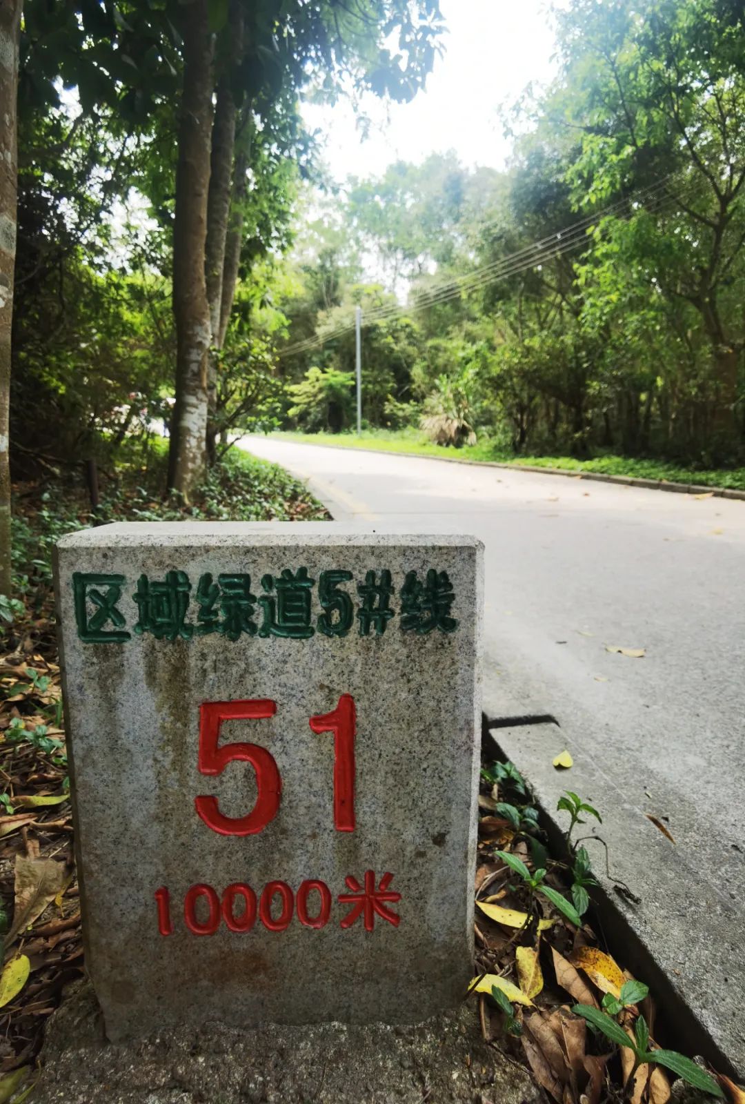 银湖山郊野公园植被茂盛,被誉为深圳市中心的“肺”,行走在绿意盎然中,眺望远处密密麻麻的钢筋城市,令人有种跳脱常规生活之感。一路上坡下坡,不知不觉中我们就到了10公里标记点。