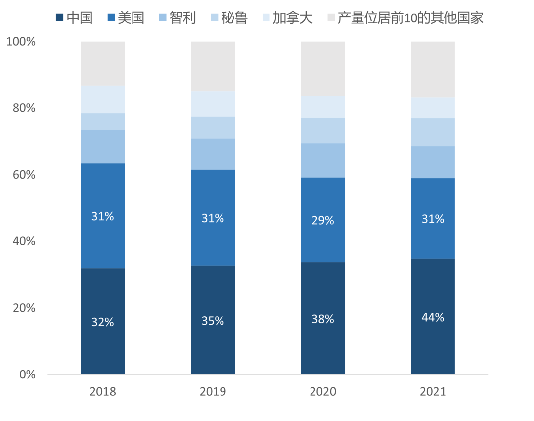 中国蓝莓种植面积占全球比重逐年扩大。根据2023年IBO报告,中国2022年的种植面积已达7.7万公顷,产量达52.5万吨。