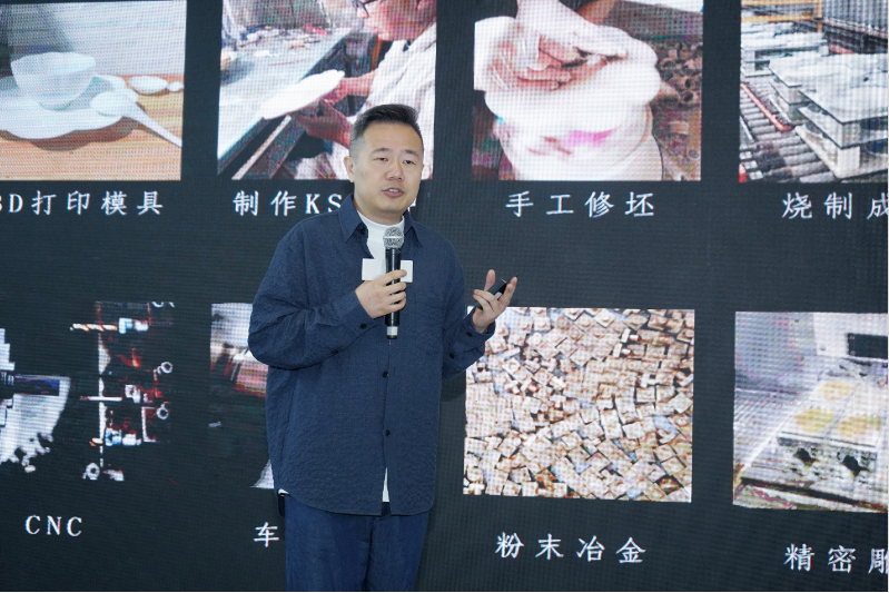 国家陶瓷资深设计师、SHEXI品牌联合创始人余志超先生则从设计师的角度分享了他对美食与美器的独到见解。他指出”设计,是人类文明、地区文化的映射,是思想观念、生活方式和价值共识的载体“。餐具的设计,不仅是工艺的传承与创新,随着消费者对个性化和独特体验的需求不断增加,器皿也需要不断创新,提供更加多样化的选择来丰富用餐体验,同时余志超先生也分享了多个他参与的实际案例,不仅让大家了解了何为”美器“,更是直观的感受了“美食和美器”相结合后的实际效果。