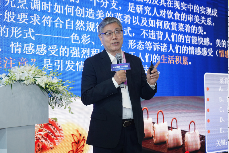 论坛现场,上海餐饮烹饪协会副秘书长邵建华先生发表了热情洋溢的演讲,他从美学的角度分析了美食和美器的关系,美食与器皿的完美结合,不仅是对食物本身的尊重,更是对食客的尊重。在品尝美食的过程中,我们要将情感参与进审美,将静态美、动态美、奇巧美的三重境界通过餐具体现出来,美食和美器的完美结合,方能达到色香味俱全的境界。