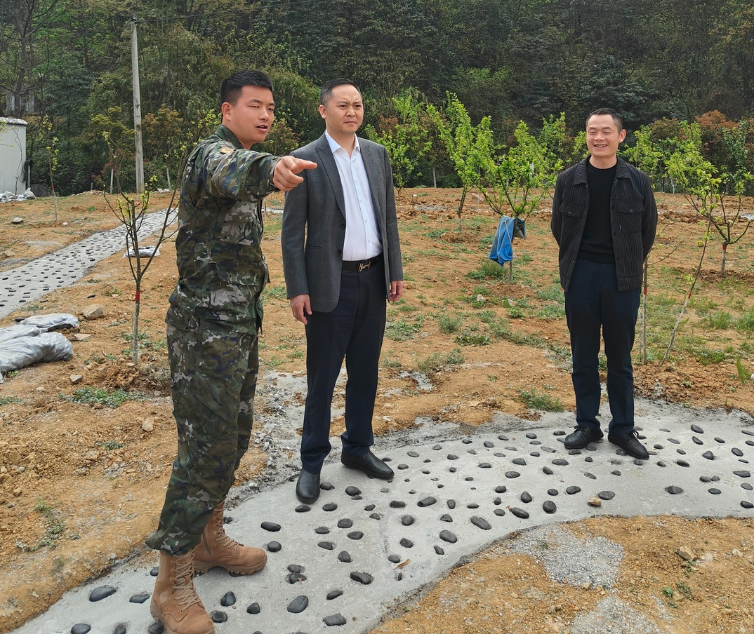 4月1日,“双拥林”步道项目建设完工,在武警中队鲍林华中队长、陈永政指导员的带领下,县退役军人事务局罗永树副局长、县青年企业家商会会长周小勇、县青年企业家商会秘书长余猛一行来到双拥共建林。对“双拥林”步道进行项目验收。