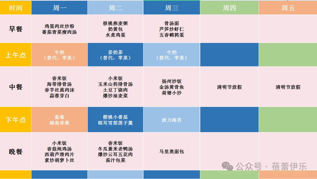 美好“食”光,蓓蕾相伴——岳麓区八幼教育集团蓓蕾伊乐幼儿园2024春季第五周食谱回顾