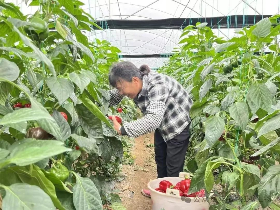 生物防治等现代化技术,实现彩椒生态无公害,生吃味道更鲜甜。同时,基地从育苗、种植、管理、采收、分拣包装、物流运输打造全产业链,为当地群众提供大量就业岗位,工人人均月收入3000元以上。