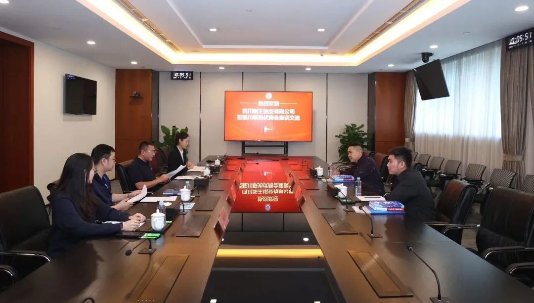 4月2日,四川新王铝业有限公司董事长贺晓军、总经理贺梦莅临四川省川联光伏产业商会座谈交流,商会秘书长黄其刚热情接待。