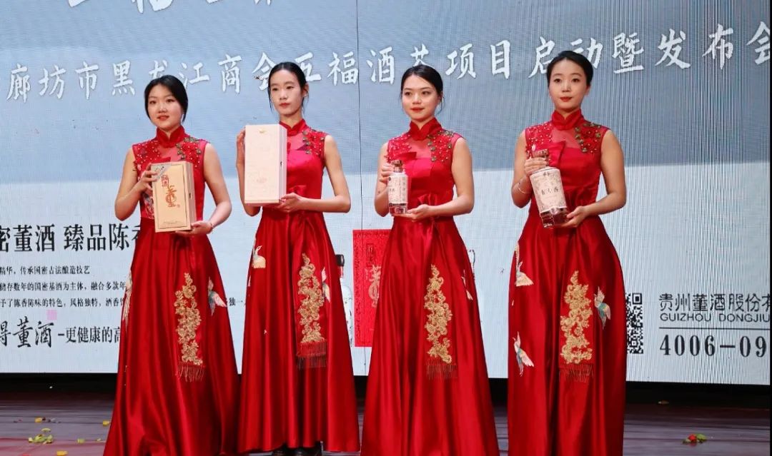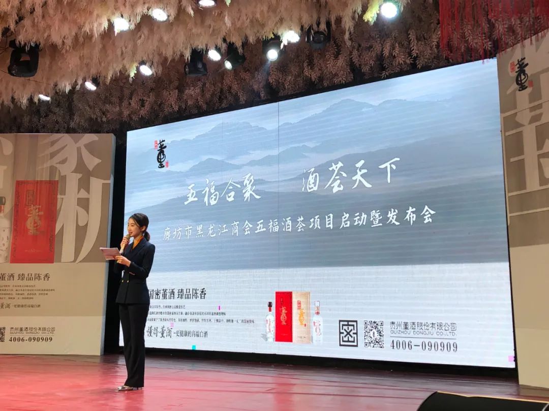 贵州董酒销售有限公司品牌推广经理张立贤现场进行了推介。贵州董酒 —位于世界三大名酒之乡贵州遵义,是中国老八大名酒,曾经四次荣获“中国名酒”称号;董酒的工艺和配方从1983年起三次被国家科技部、轻工部和保密局列为“国家秘密”技术,2006年董酒工艺、配方被重申为永久“国家秘密。发布会现场模特以走秀的形式展示了董酒,为大家呈现了一场精彩的视觉盛宴。在欢呼声和掌声中,“五福酒会”成员一起上台举杯祝酒。