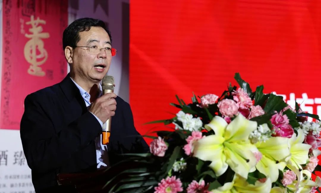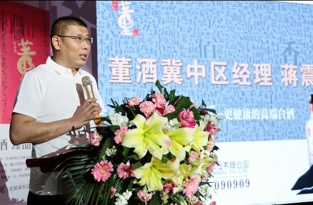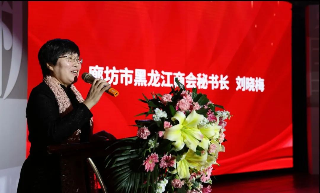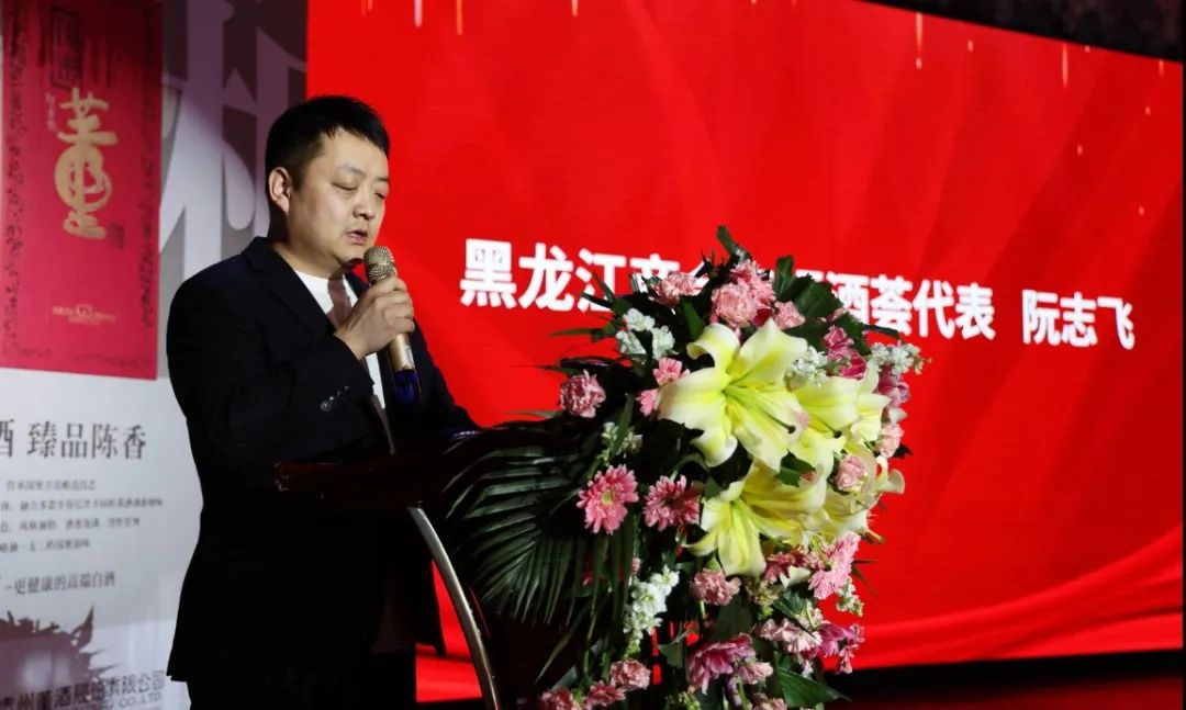 廊坊市商务局副局长王明峰、贵州董酒销售有限公司冀中大区经理蒋震及我商会秘书长刘晓梅分别致辞。刘晓梅秘书长在致辞中代表商会对五福酒荟项目的启动和发布表示热烈的祝贺,同时对华玉忠、阮志飞、刘海峡、白胜泽、朱浩楠5位龙商家人在商会平台上强强联合、创新项目给予充分肯定。她祝福董酒在廊坊开拓市场、大卖特卖;同时希望大家懂董酒、爱董酒、喝董酒,健康长寿。她还代表商会赠送“五福荟聚、酒运旺达”的对联,同时商会赠送花篮以示祝贺。