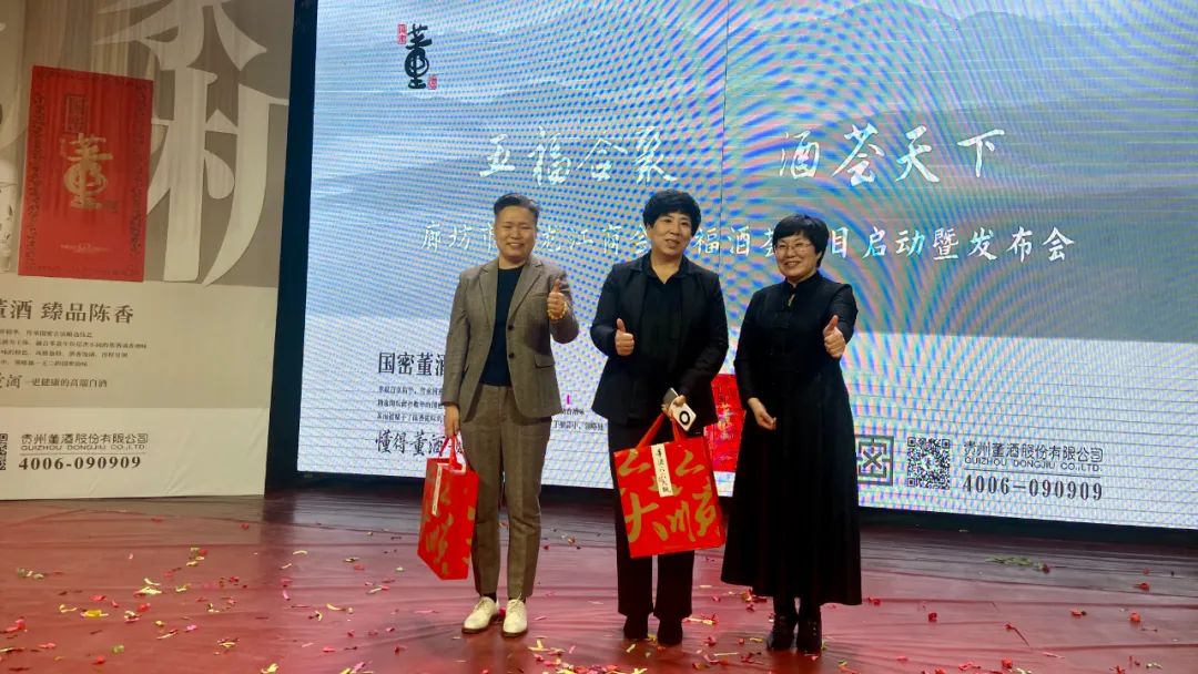 3月30日上午,以“五福合聚,酒荟天下”为主题的商会会员合伙项目五福酒荟项目启动及发布会在百合庄园隆重举行。市商务局、市委宣传部、市工信局、市审批局、市烟草局、市土地局、市酒业商会、市公关协会、廊坊联通、市开发监理公司有关领导,贵州董酒销售有限公司冀中大区代表,商会会员及社会各界朋友200余人参加了活动。其中我商会监事长黄金凤,秘书长刘晓梅,执行会长于海河、焦延梅、倪术、高雨,常务副会长韩庆飞、杨洪伟、王景彬,副会长华玉忠、苑雷、张艳平、王金龙、刘海峡、张东辉,副秘书长索宁等近百名龙商家人到场助力活动开展。
