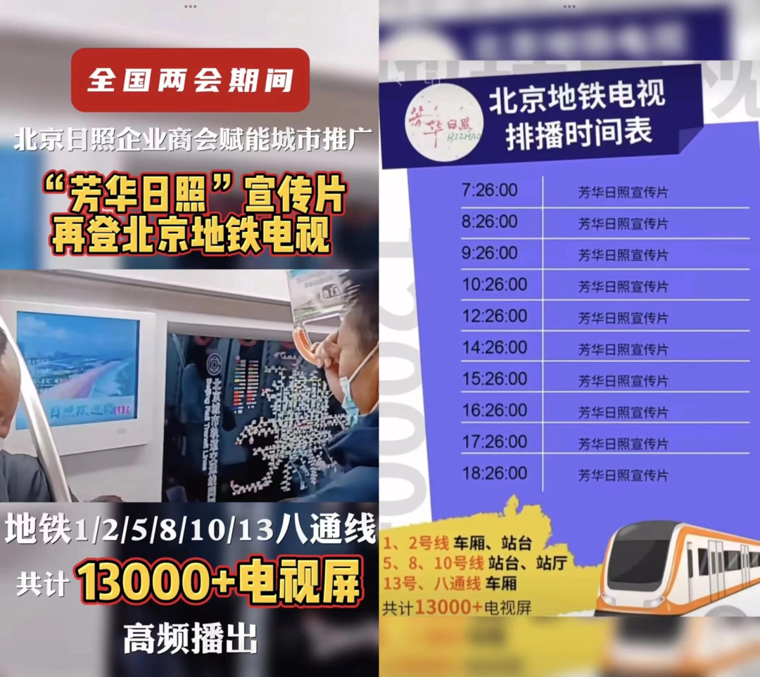 3月4日,北京日照企业商会赋能城市推广,两会期间“芳华日照”宣传片再登北京地铁。