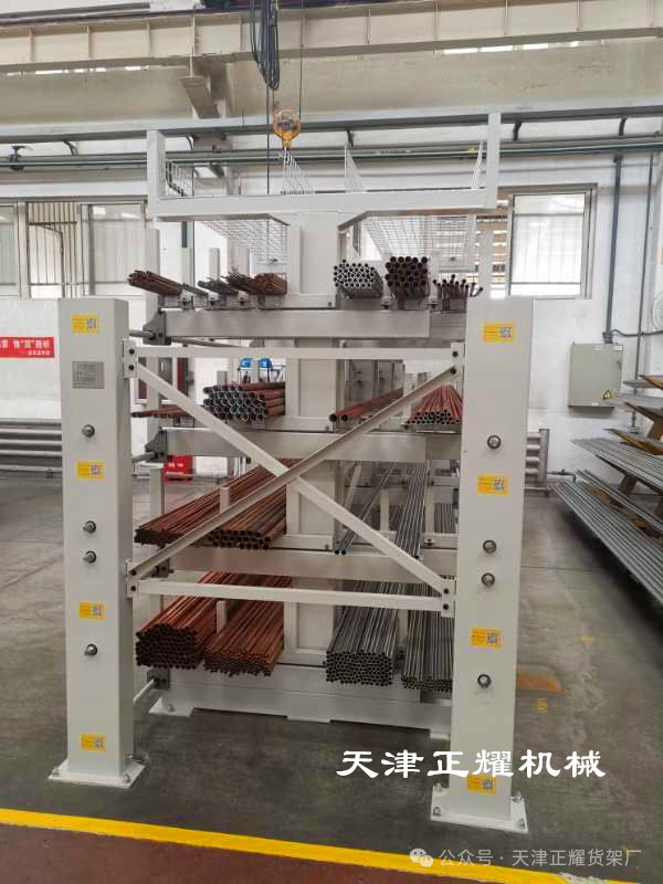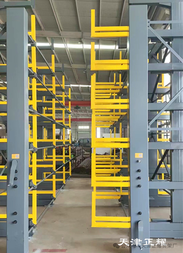 伸缩悬臂货架适用于存放长条状、长卷材以及不规则货物,如钢材、铝型材、棒料、铜排、钢筋、轴、扁料等。伸缩悬臂货架的承重能力很大,每个货位可承载5吨,总存储量可达60吨。