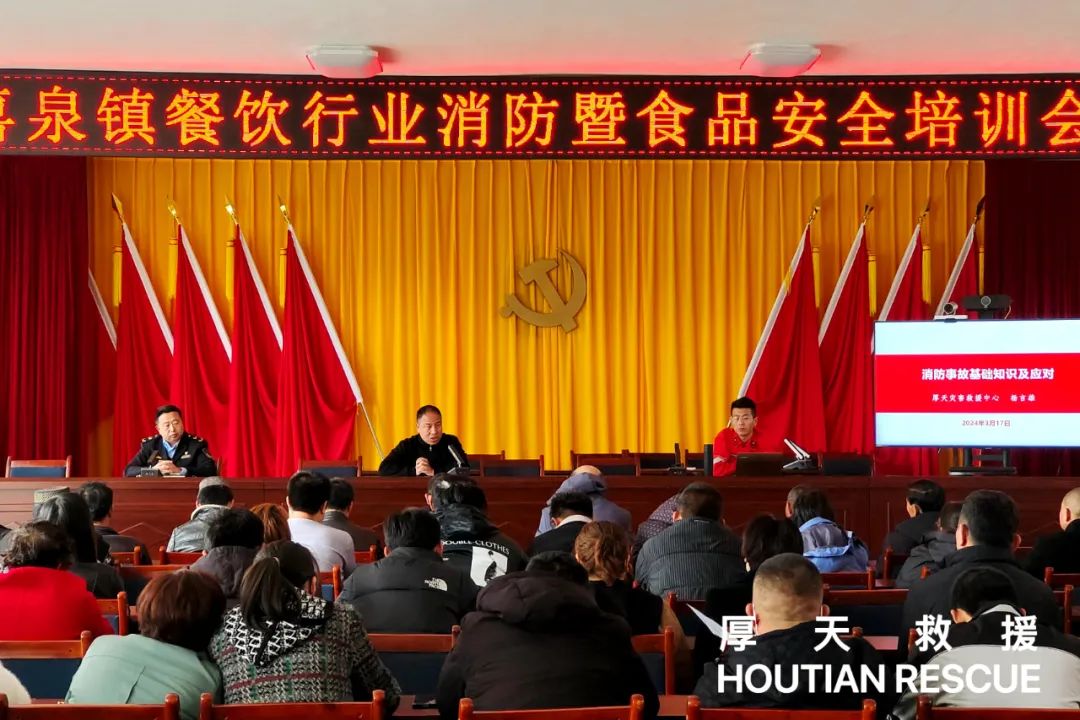 为进一步夯实消防安全工作,近日,景泰厚天救援联合党支部书记、大队长杨言雄为喜泉镇开展餐饮行业消防暨食品安全培训。