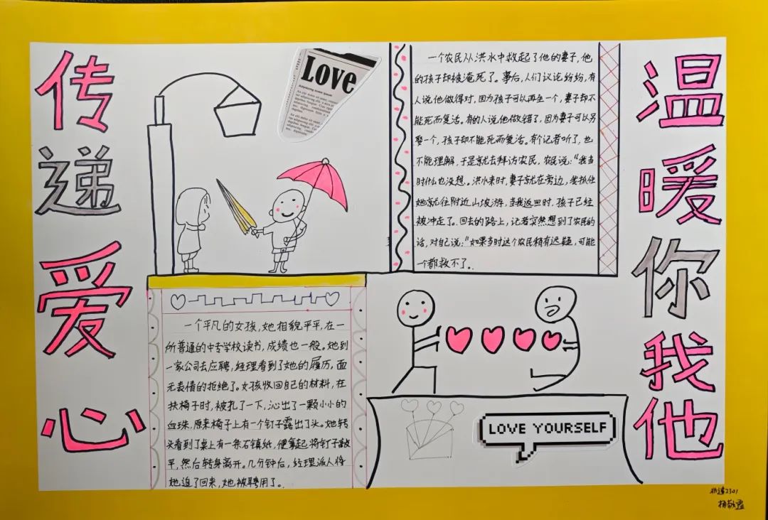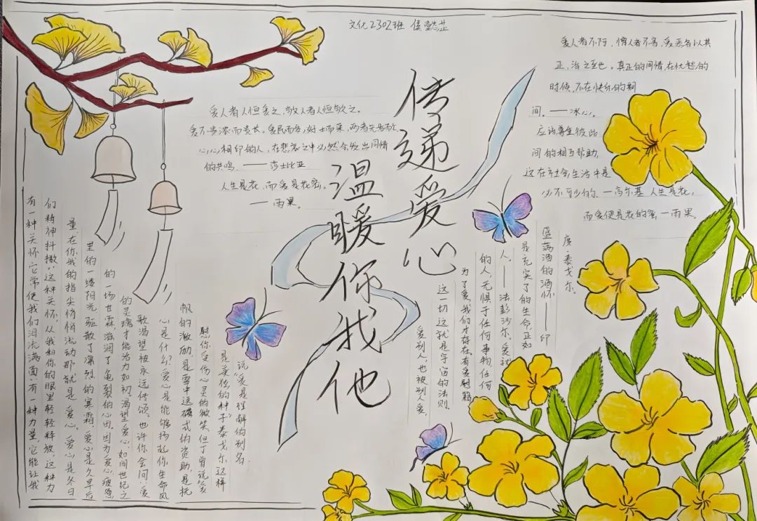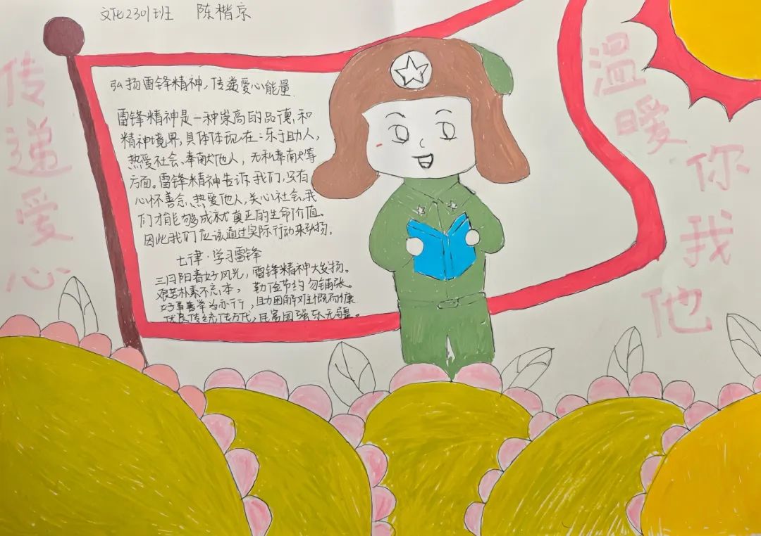 在春风和煦的三月——学雷锋月,文化产业系开展了一场以“传递爱心,温暖你我他”为主题的手抄报征集活动,吸引了众多学生积极参与,共同传承和发扬雷锋精神。