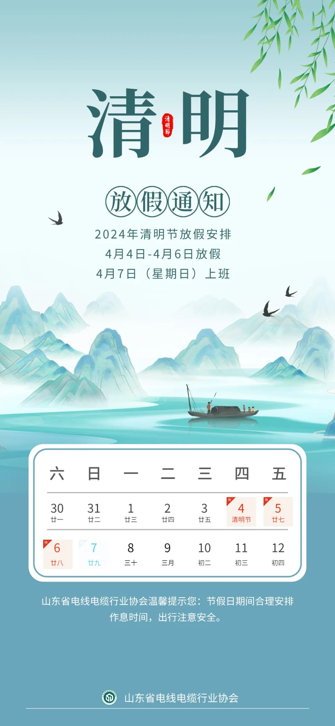 【放假通知】山东省电线电缆行业协会清明节放假通知