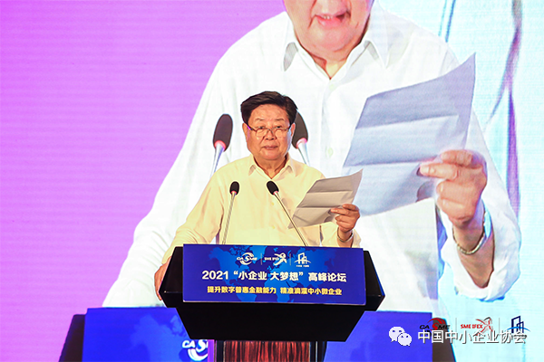 十二届全国政协副主席、全国工商联原主席王钦敏致辞并宣布大会开幕,中国中小企业协会会长李子彬与国家发展改革委财政金融和信用建设司二级巡视员田原、工信部中小企业局副局长王海林、中国银行业协会党委副书记、秘书长刘峰分别致辞,中国期货业协会会长洪磊,中国中小企业协会谢极,宁金彪出席。开幕式由中国中小企业协会专职副会长马彬主持。在随后举办的2021“小企业 大梦想”高峰论坛上,国务院发展研究中心原副主任王一鸣,中国建设银行原董事长王洪章,以及联想集团、度小满金融、国新金融、同盾科技、大商之道等企业负责人分别做了演讲。