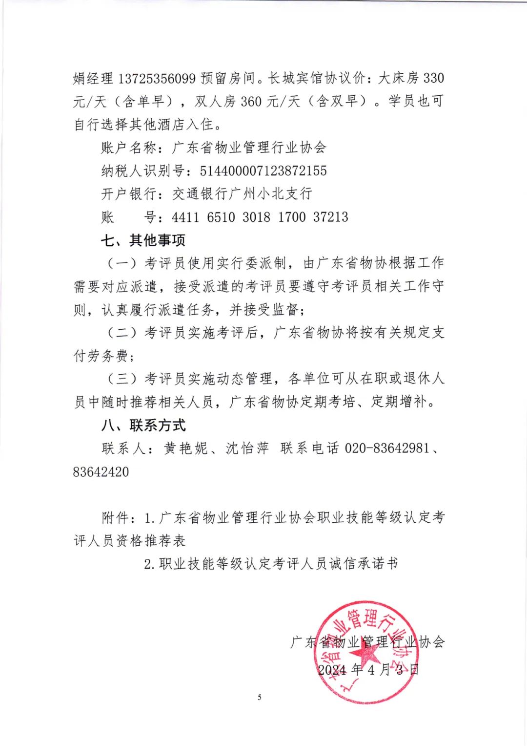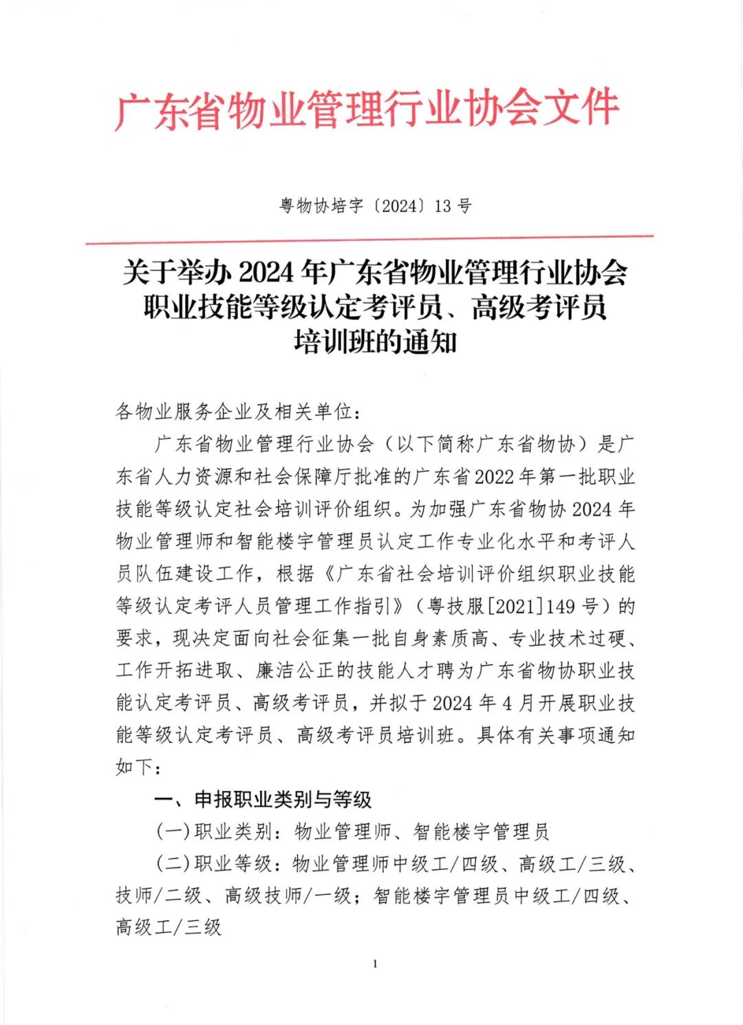 关于举办2024年广东省物业管理行业协会职业技能等级认定考评员、高级考评员培训班的通知
