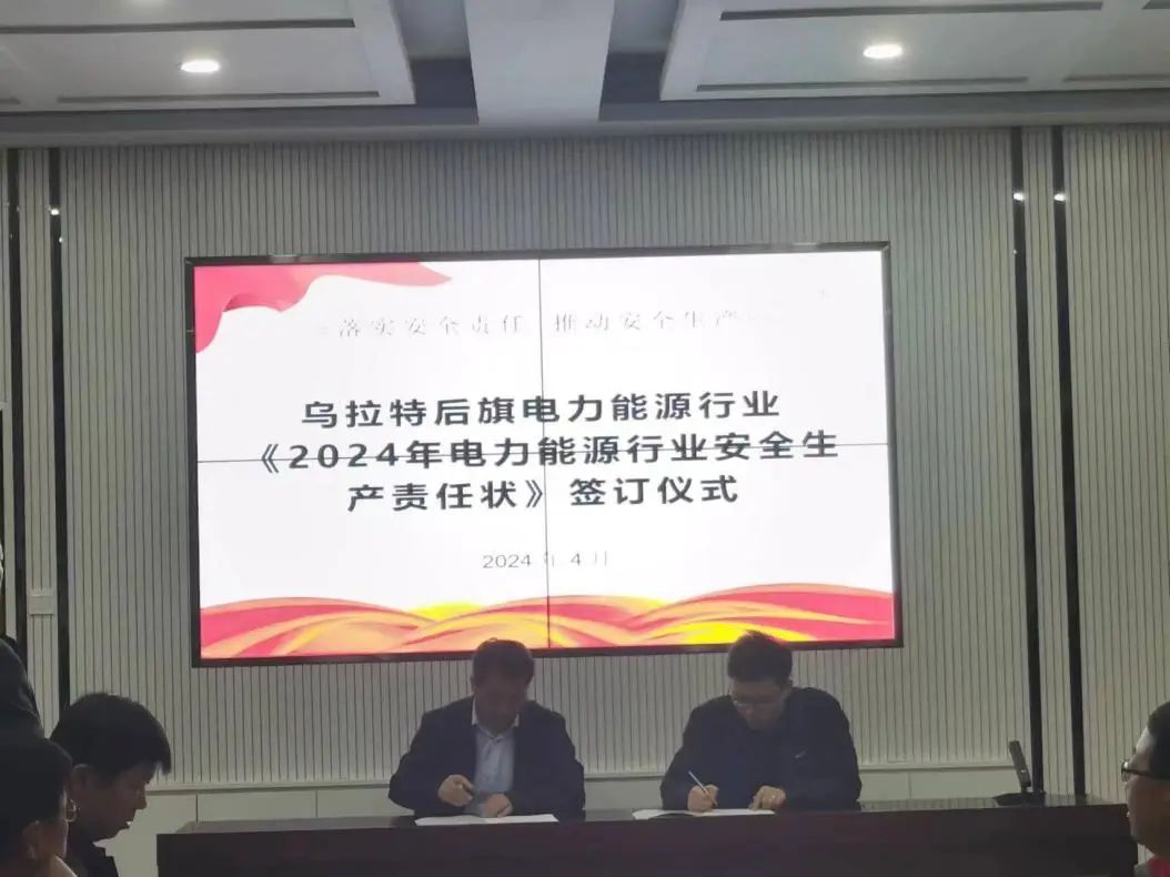 会上,为进一步加强电力能源行业安全生产管理,杜绝特大事故、遏制重大事故、减少一般事故,压实安全生产主体责任,旗发改委主任张晋超和全旗电力能源企业签订2024年安全生产责任状。