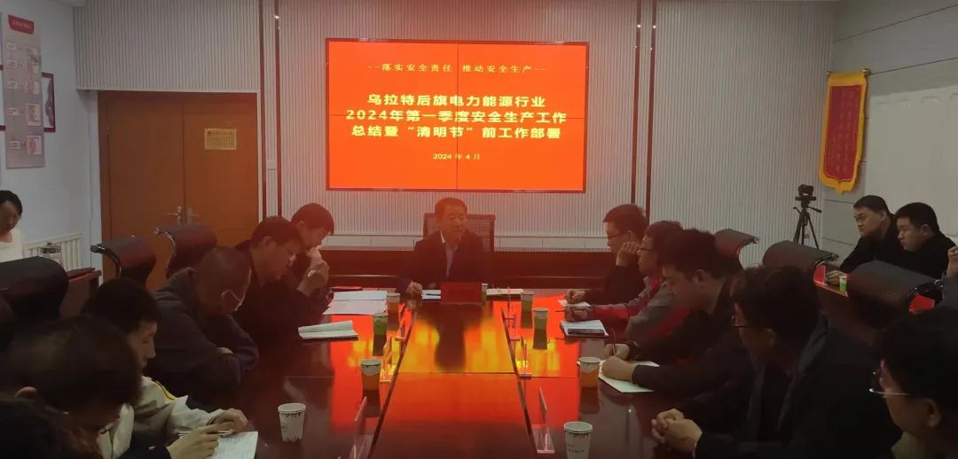 2024年4月3日上午,乌拉特后旗发改委组织召开全旗电力能源行业一季度安全生产工作会议暨“清明节”期间安全生产工作部署会,发改委党组书记、主任张晋超同志出席会议并讲话,副主任孙瑞祥主持会议。全旗电力能源企业和拟新建电力工程负责人参加会议。