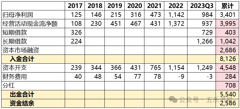 上图为光伏设备行业上市公司2017年到2023年三季度整体资金运营情况,在理杏仁网站上有分红和资本市场融资两项累计数字,其他数据是我将所有62个公司每年的数据表现汇总而成,虽然可能会有遗漏,但不会有大错误。