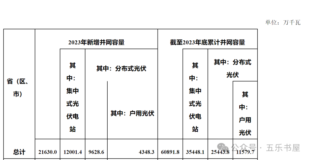如上图所示,在2023年,我国新增光伏装机216GW,也就是2.16亿千瓦,其中分布式0.96亿千瓦,集中式1.2亿,集中式占比57%;到2023年底,累计光伏装机6.1亿千瓦,集中式占比57%。