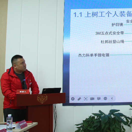 绿金绿化养护部经理黄磊做《园林机械和信息化管理应用》主题交流