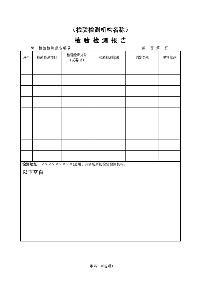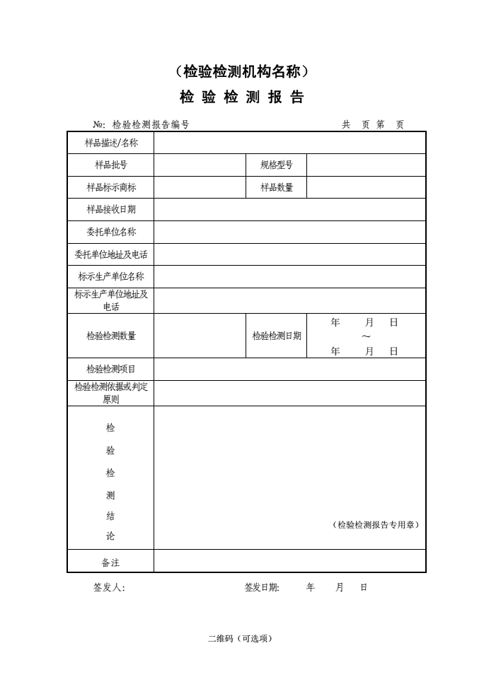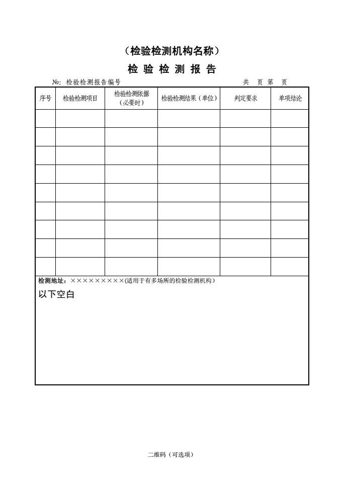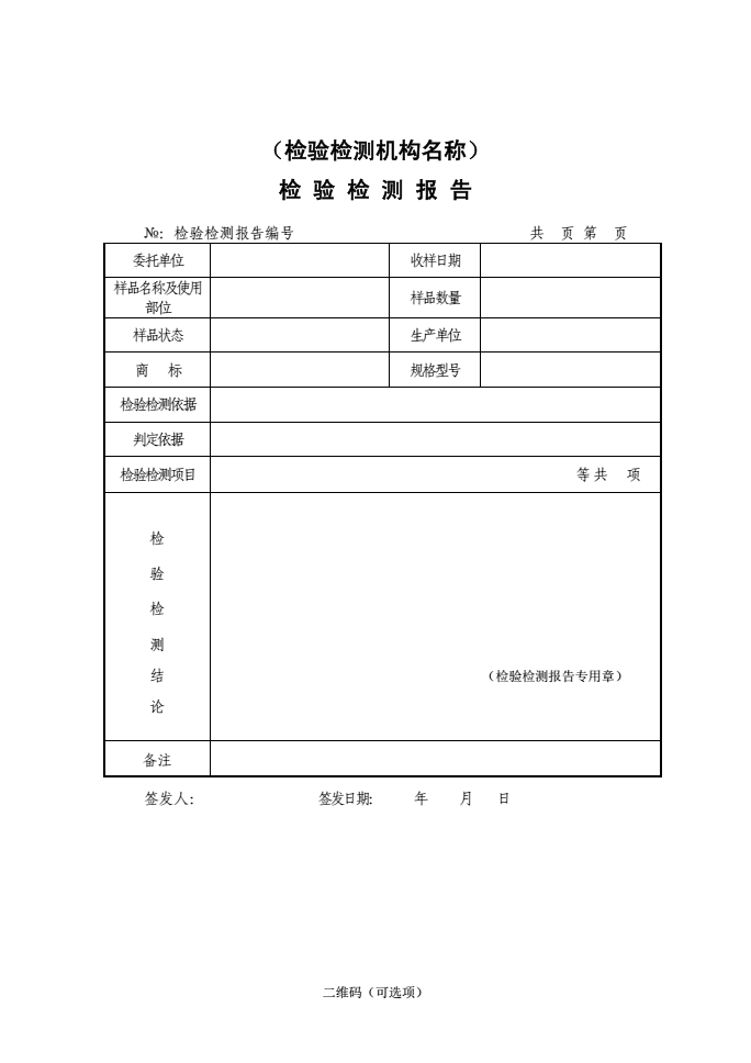 (四)中国认证认可协会欢迎各相关单位对本次发布的检验检测报告(样式)模板提出修改意见,持续完善检验检测报告(样式)模板。