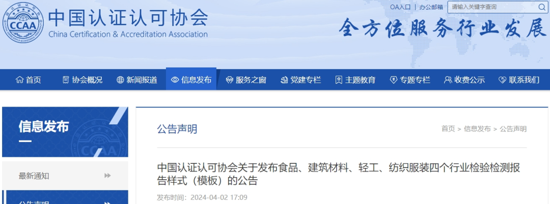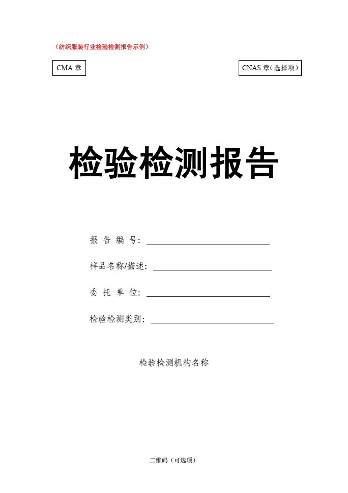 (一)本次发布的检验检测报告(样式)模板为食品、建筑材料、轻工以及纺织服装四个行业;