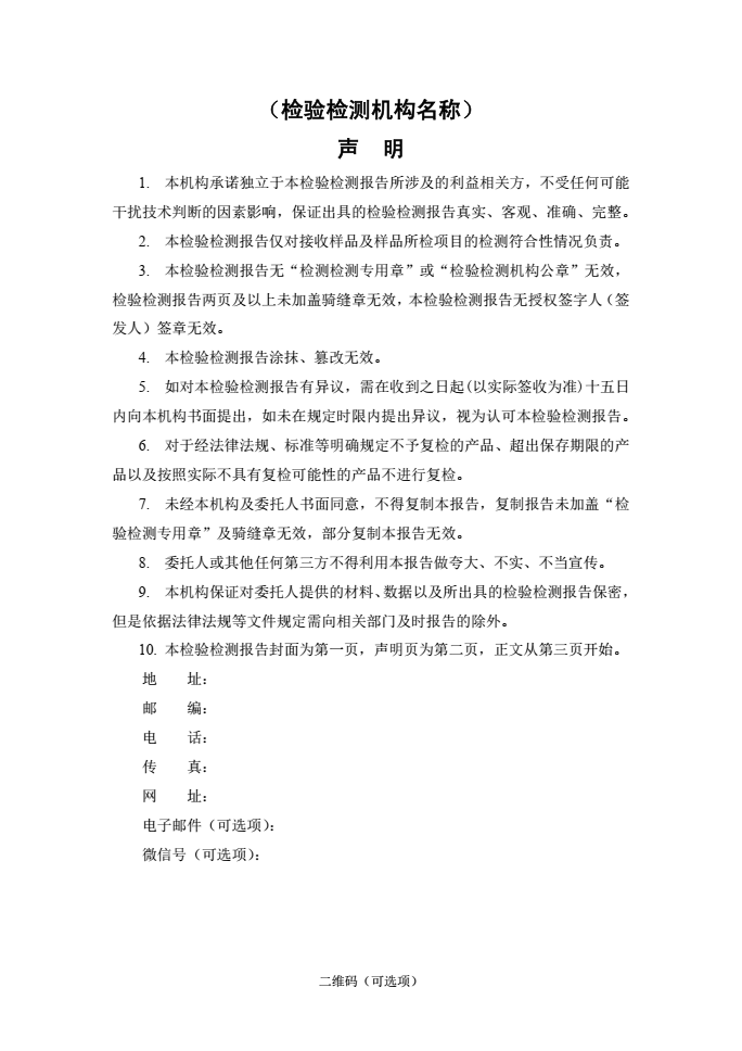 (三)本次发布的检验检测报告(样式)模板供各类检验检测机构、实验室及相关单位自愿采信使用或修改使用,中国认证认可协会不对与之相关的任何法律纠纷负责;