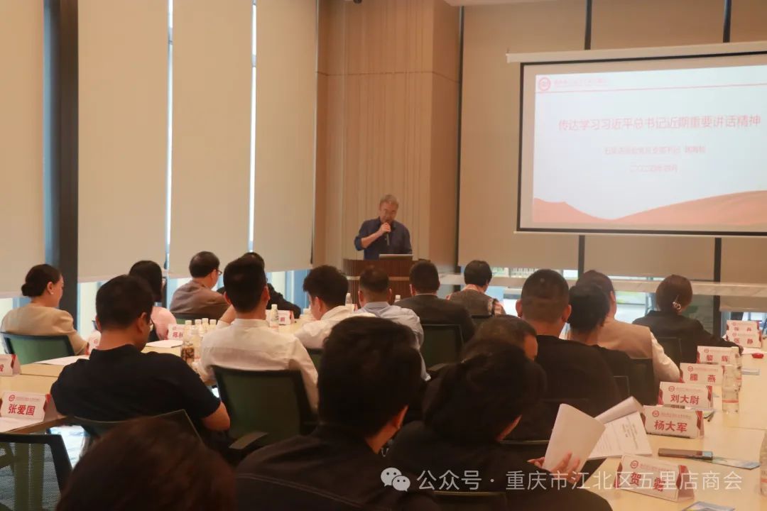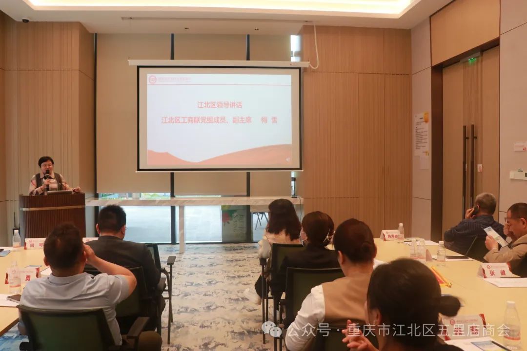 张丹通报五里店街道一季度经济社会发展情况并对商会提出希望。张丹表示商会要聚力发展,服务会员企业,为江北五里店区域经济高质量发展作贡献;要创新服务,打造中国特色一流基层商会;要积极推动会员企业履行社会责任,打造责任渝商。