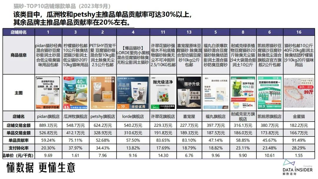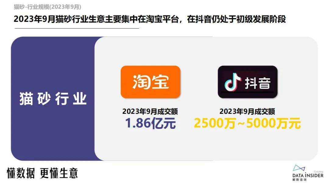 2023年9月猫砂行业生意主要集中在淘宝平台,在抖音仍处于初级发展阶段