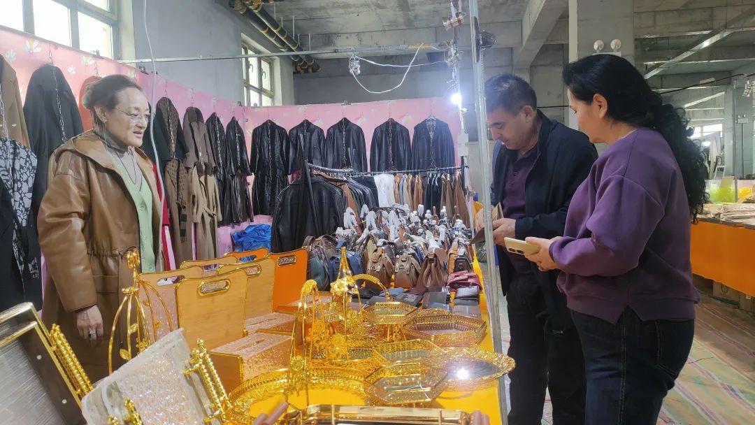4月1日,和静县举办2024年春季民族特色商品展览会,来自内蒙古的20家商户带来的5000多种民族特色商品参展。