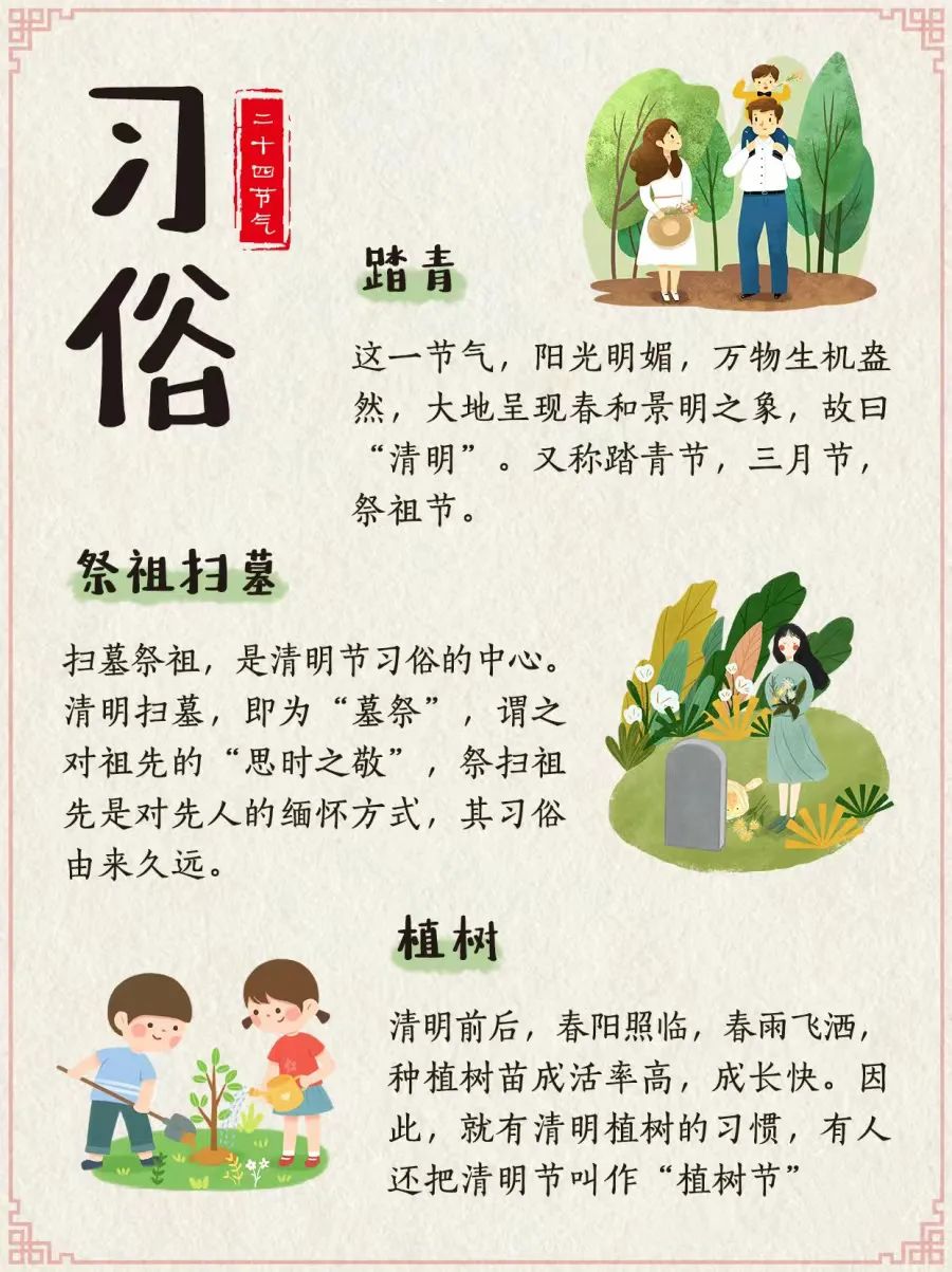 清明节的起源可以追溯到古代人们对天象的观察和农耕文化的重视,经过历史的演变和发展,逐渐形成了祭祖、踏青、禁火等独特的节日习俗。这些习俗不仅体现了中华民族传统文化的重要内涵,也反映了人们对祖先的敬仰和怀念之情,以及对大自然和生命的敬畏之心。