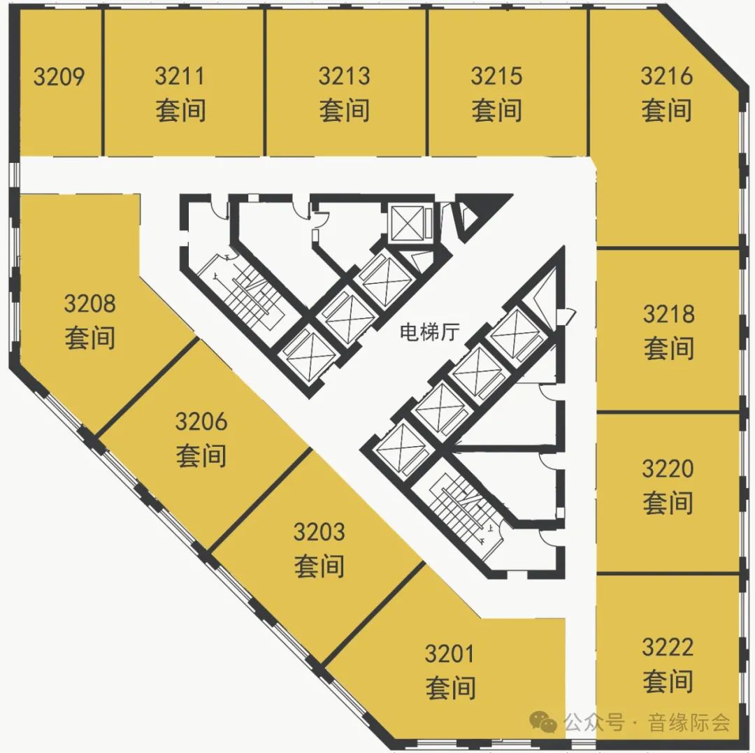 32楼提供12间展房,包括11个套间和1个单间。
